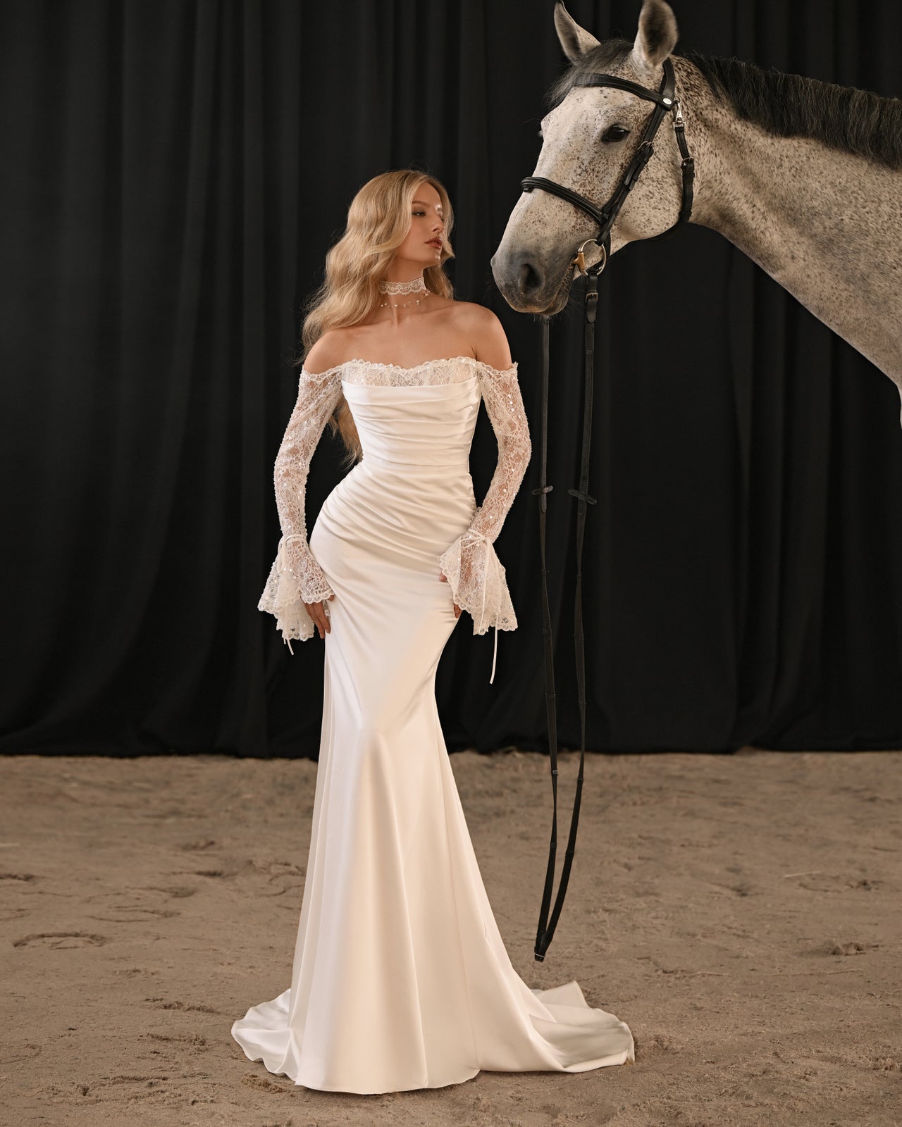 SERRA Off-Shoulder Lace Sleeve Mermaid Wedding Dress